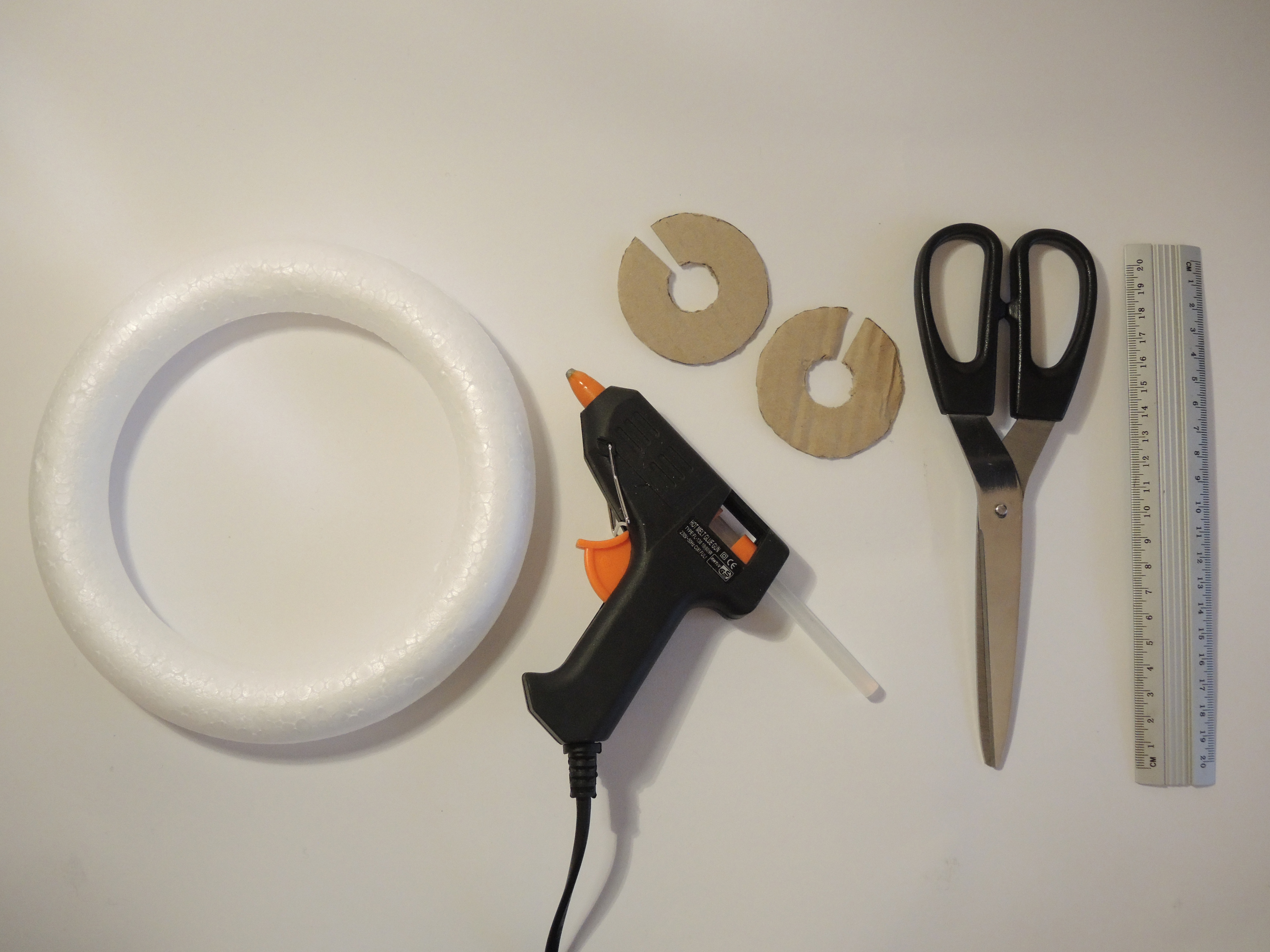 - Corona di polistirolo bianco (quella che ho usato è di 22 cm di diametro)Cartone