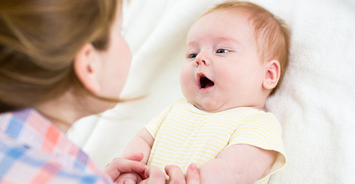 Fin dai primi mesi di vita il bambino sorride ed emette suoni quando qualcuno gli parla, volgendo la testa verso chi parla e cercandolo con gli occhi.